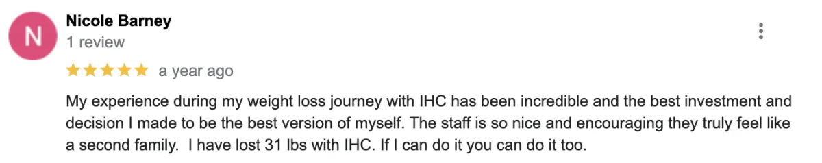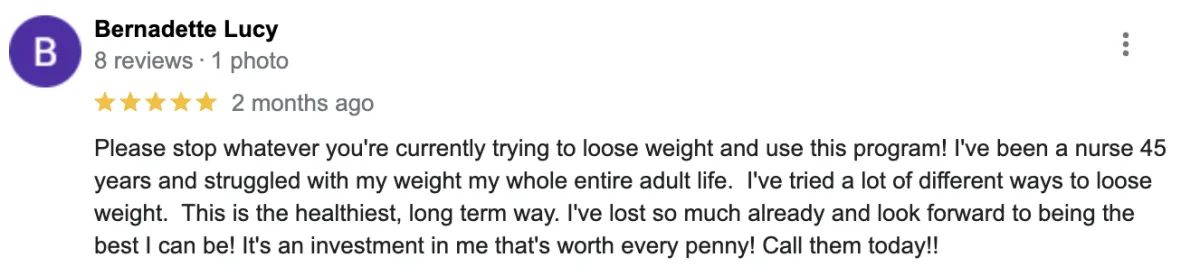 Our 100% Commitment - We know you’ll fall in love with our wonderful team as much as you will our program, especially when you see its fast results! The team is here to support you in whatever way is needed and possible. We want you to succeed for LIFE. Get scheduled for your complimentary consultation & get started today, why wait to feel good in your skin again!?